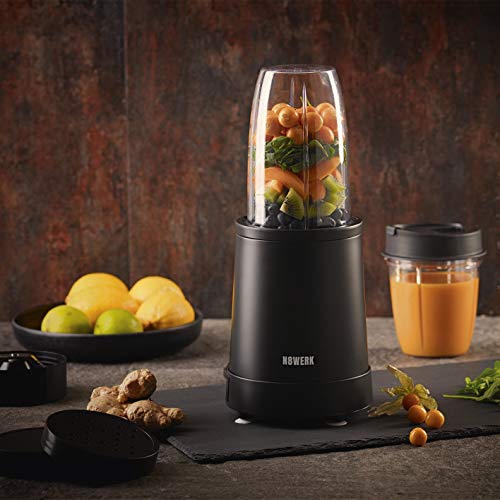 N8WERK Nutrition Mixer in de Midnight Edition | Blender voor smoothies en cocktails, Ice Crush functie, roestvrijstalen messen | 700 ml en 350 ml mengbeker met To-Go-deksel, 800 watt, zwart