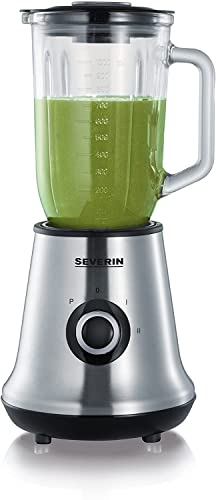 SEVERIN SM 3734 Staande mixer met 1,0 l glazen blender, mixer met 2 standen en pulse-functie, krachtige keukenmixer met roestvrijstalen mes, ca. 500 W, roestvrij staal/zwart