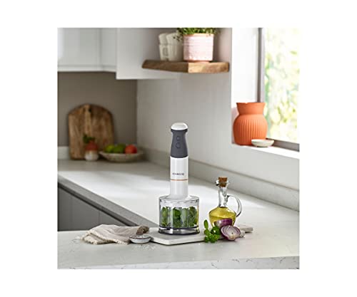Kenwood TriBlade XL HBM40.306WH, staafmixer met verwijderbare roestvrijstalen handgreep, 3 messen voor sneller mengen, klopper, versnipperaar, aardappelpuree, blenderbeker, 850 W, wit/grijs