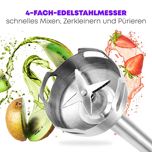 Eenvoudige reiniging: voor een eenvoudige en snelle reiniging is de extra lange mengstaaf (ca. 27 cm) afneembaar – Een extra brede mengkop voorkomt storende spatten tijdens de verwerking
