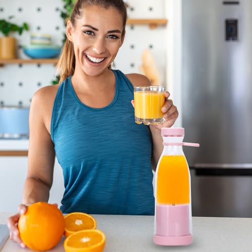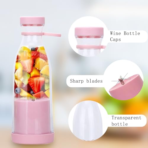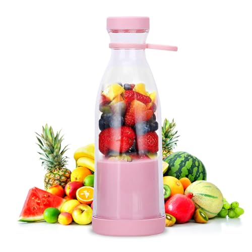 UQTUKO Draagbare mixer, 380 ml mixer, smoothiemaker met 6 messen, fresh juice mixer, USB oplaadbare mini-mixer, mini-blender voor vruchten-smoothies, sap, jam en shakes, BPA-vrij (roze)