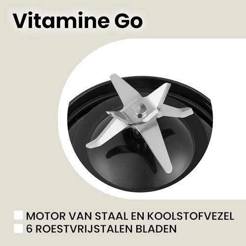 DE PERFECTE METGEZEL: De VITMINE GO snoerloze blender bereidt gemakkelijk je favoriete snacks, shakes of smoothies. Het is een perfecte oplossing voor mensen die waarde hechten aan comfort en een gezonde levensstijl. Het toestel is ultralicht, weegt slechts 480 gr, heeft een ergonomische vorm, waardoor je hem gemakkelijk meeneemt naar je werk, school, sportschool of op reis