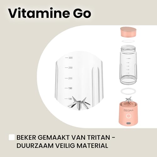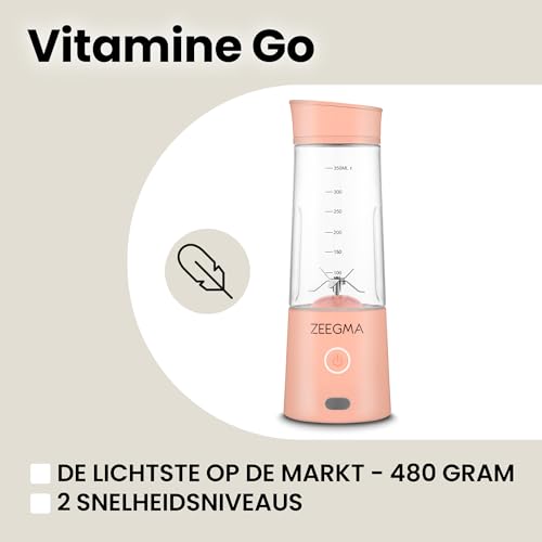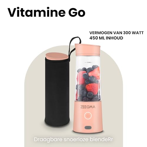 ZEEGMA VITAMINE GO draagbare blender 450 ml voor cocktails en smoothies, USB oplaadbare met Batterij 5000mAh, Persoonlijke Mini-blender met 6 Messen, 2 Snelheden, 25 Toepassingen per oplaadbeurt, 300W